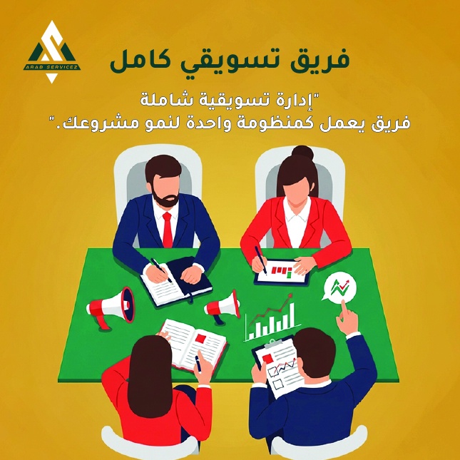 فريق تسويق متكامل لإدارة المحتوى والتصميم والحملات الإعلانية والتحليل مع تقارير دورية لرفع النتائج والتحويلات.