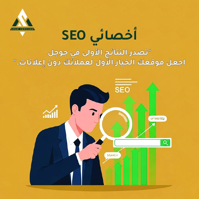 خدمة سيو SEO شهرية: بحث كلمات مفتاحية، تحسين داخلي للصفحات، ومتابعة وتقارير دورية لزيادة الظهور والزيارات المستهدفة.